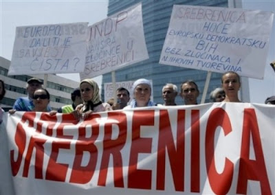 Note: Photos used in the following section are from June 11th 2007 protests in Sarajevo. Bosnian Muslim women from Srebrenica hold banners that read Srebrenica is the symbol of genocide during their protest in Sarajevo, on Monday, June 11, 2007. Thousands of survivors of Europe's worst massacre since World War II protested Monday, demanding a special administrative status for the town of Srebrenica, saying it should not be run by Bosnian Serb authorities who are responsible for genocide in that town. (Credits: AP Photo/Hidajet Delic - For Fair Use Only)